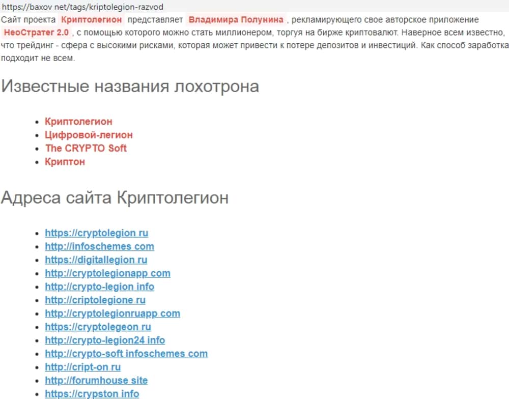 cryptolegion ru - подвальный ресурс шарлатанов Крипто Легион