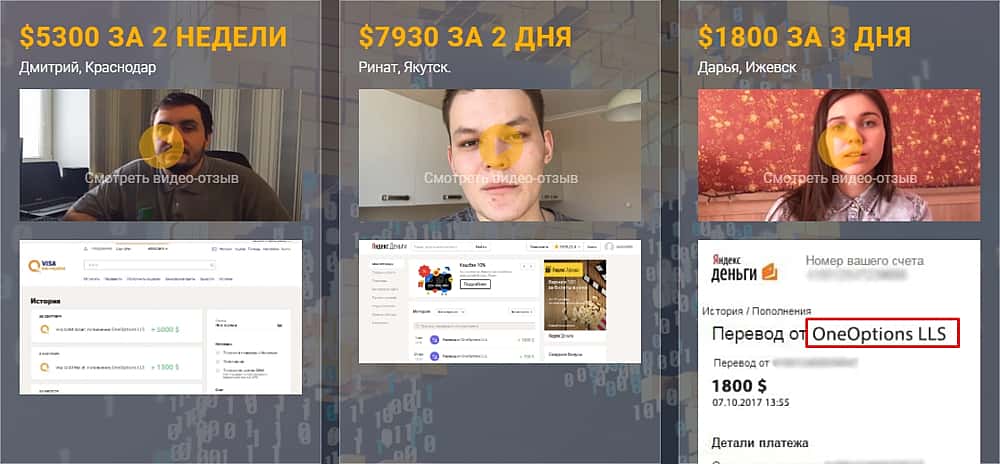 На подвальном сайте махинаторов Крипто Легион можно заметить постановочные видеоотзывы. На скриншотах выплат, которые представляют якобы успешные трейдеры, можно увидеть источник дохода: OneOptions LLS. Это владельцы проекта OneOption, который известен тесным партнерством с форекс-кухнями InteractiveBrokers и AmeriTrade.