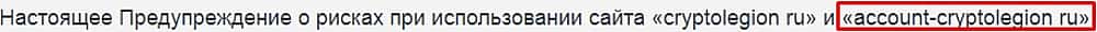 В так называемом соглашении на лендинг-поделке аферистов CryptoLegion можно обнаружить второй официальный адрес сайта. Предположительно, этот домен используется как зеркало основного лохотрона или судя по его названию, как вход для уже втянутых в финансовую секту пользователей всемирной паутины.