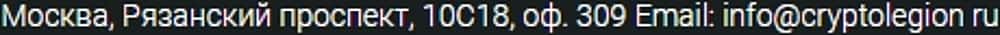 Интернет-кидалы Крипто Легион в качестве своих контактных данных оставили липу. Как, впрочем и все на их паршивом ресурсе. Почтовый ящик не существует, а по адресу, который указали разводилы такой скам-конторки нет и подавно. Весь псевдопроект Крипто Легион полнейшая ложь от начала и до конца. Вот контакты веб-лицемеров Крипто Легион: