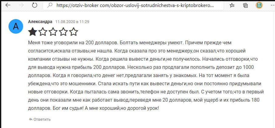 Поскольку брокер-мошенник особой популярностью не пользуется, то и обзоров о нем мало, а у тех, что есть мнение одно: перед вами обычный лохотрон.