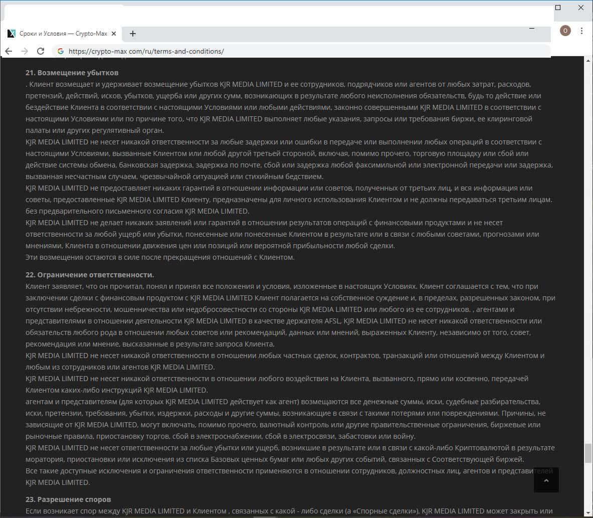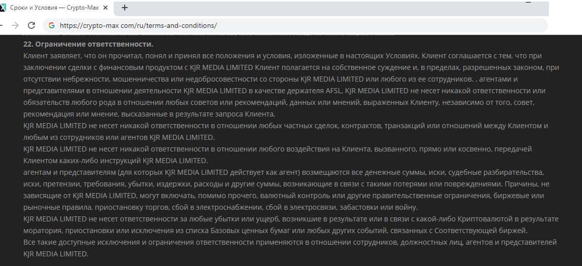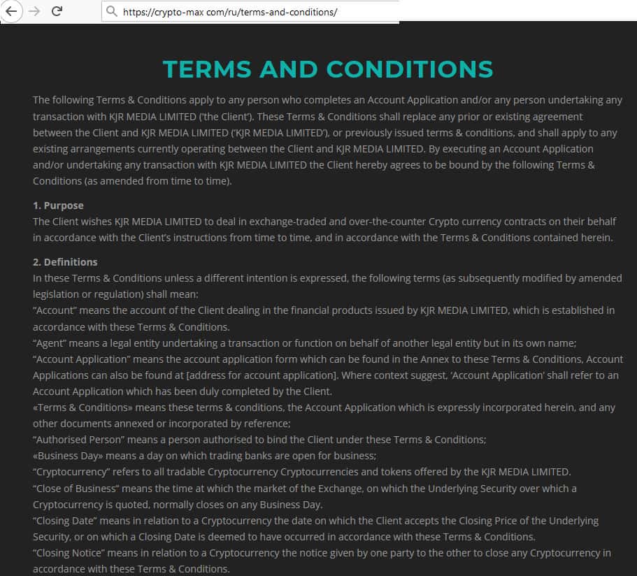 - Клиентское соглашение у Крипто Макс составлено на английском языке
