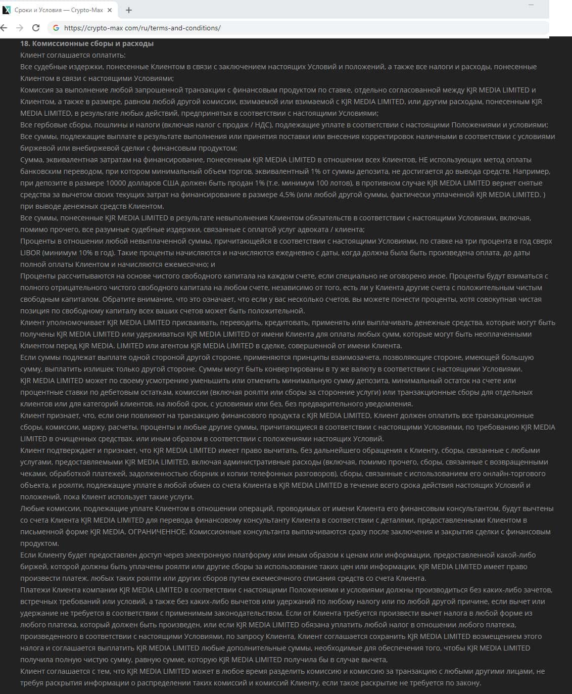 Далее публикуем продолжение полной версии перевода клиентского соглашения от КриптоМакс.