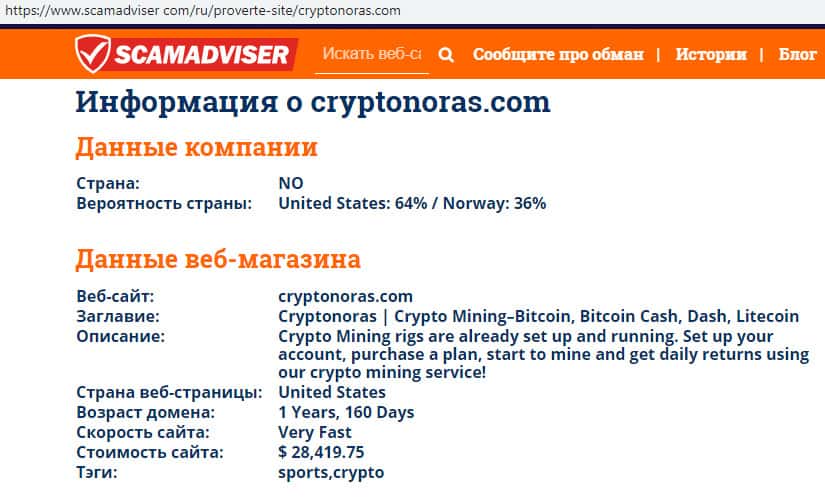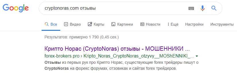 Отзывов о лохотроне Крипто Норас в сети интернет не оказалось