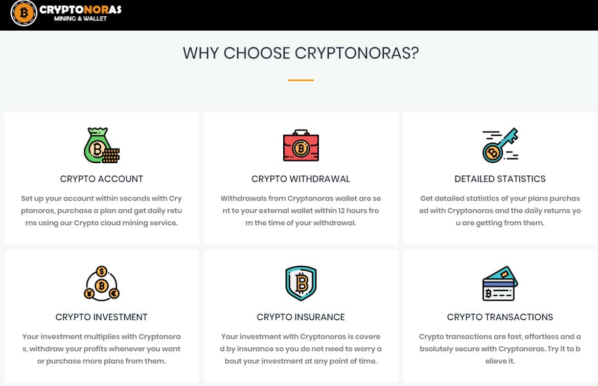 После на подвальном сайте аферистов Крипто Норас следует довольно типичный и банальный раздел с довольно сомнительными преимуществами мошенников CryptoNoras, под предлогом которых они пытаются выставить свою кухню в положительном свете. На изображении, расположенном ниже, вы можете увидеть данный раздел сайта жулья.