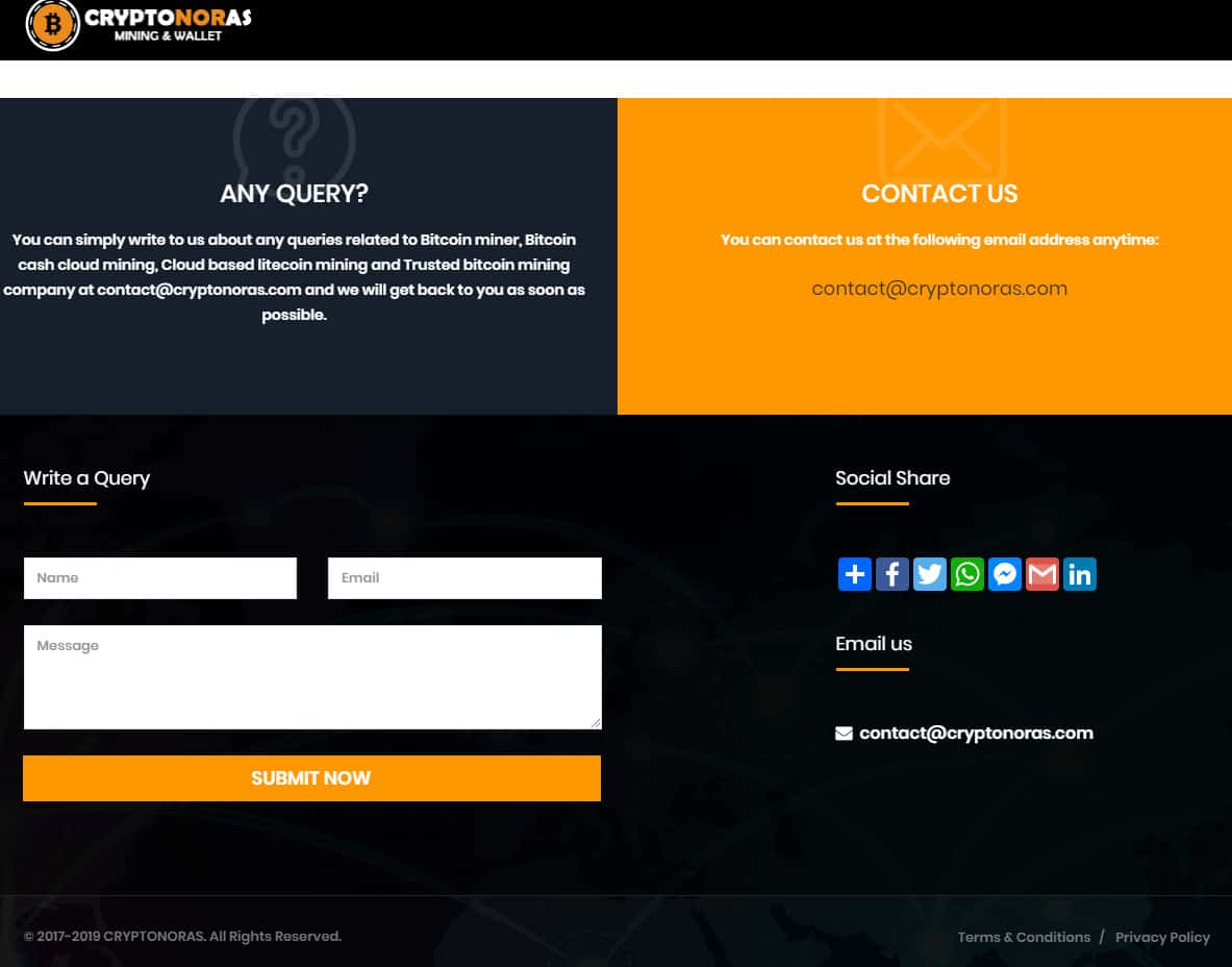 Под контакты мошенники Крипто Норас не отводили отдельный раздел своего сайта, вместо этого шулера CryptoNoras указали свой довольно сомнительный перечень непосредственно в своей политике конфиденциальности, где перечислили довольно мало контактов. Итак ниже перечислим указанные аферистами CryptoNoras контакты: