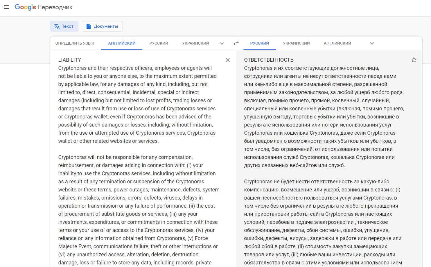 А завершаются условия сотрудничества у шулеров CryptoNoras довольно типично, а конкретнее тотальным отказом от ответственности за потери наивной клиентуры, связанные с данным подвальным сайтом и его услугами. На изображении, расположенном ниже, вы можете увидеть окончание условий сотрудничества мошенников Крипто Норас.