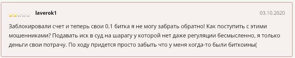 О блокировке своего счета на криптообменнике Крипто Пэй рассказывает пользователь на портале trustpilot com. У него заблокировали 55 тысяч фунтов стерлингов в биткоинах.