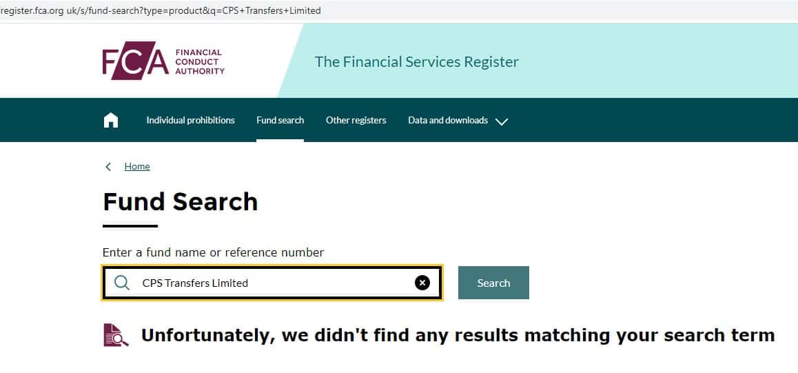 Не совсем понятно, "каким боком" здесь компания CPS Transfers Limited, которая по утверждению жуликов имеет лицензию FCA. Но, как свидетельствует сайт FCA, и это - ложь.