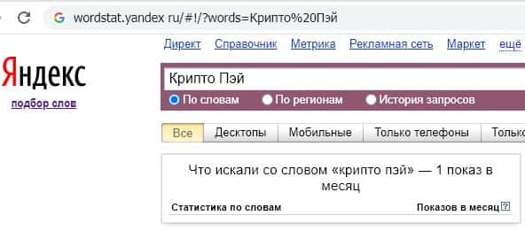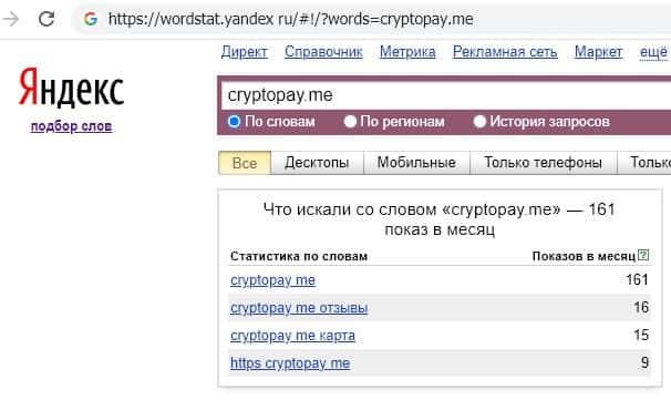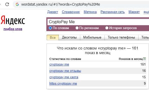 Обзор поисковых запросов информации о криптоафере Крипто Пэй в поисковой системе Яндекса