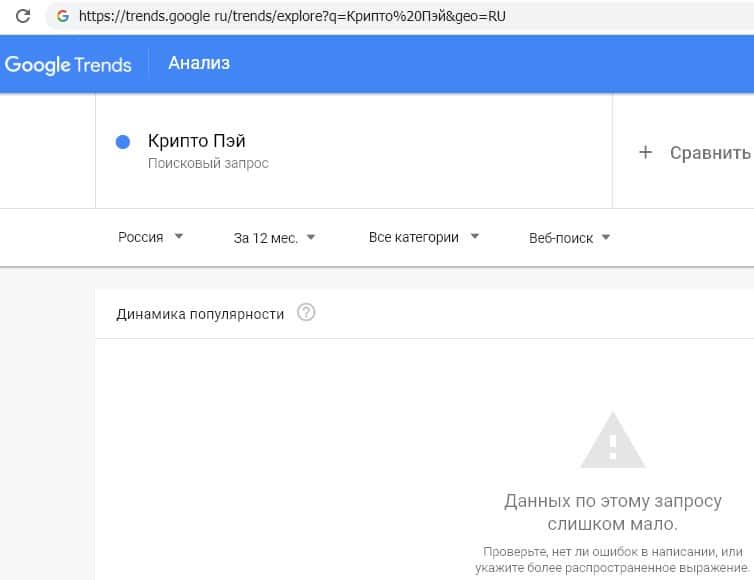 Аналитика количественных показателей запросов о конторе Крипто Пэй в системе Google