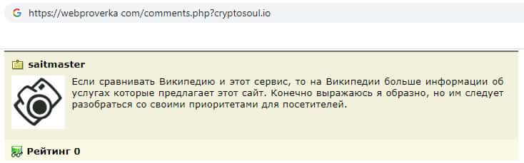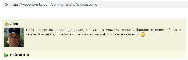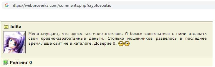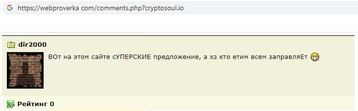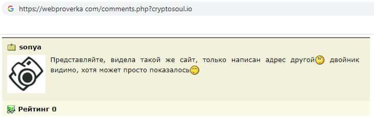 - Мнение других интернет ресурсов о лохотроне Крипто Соул