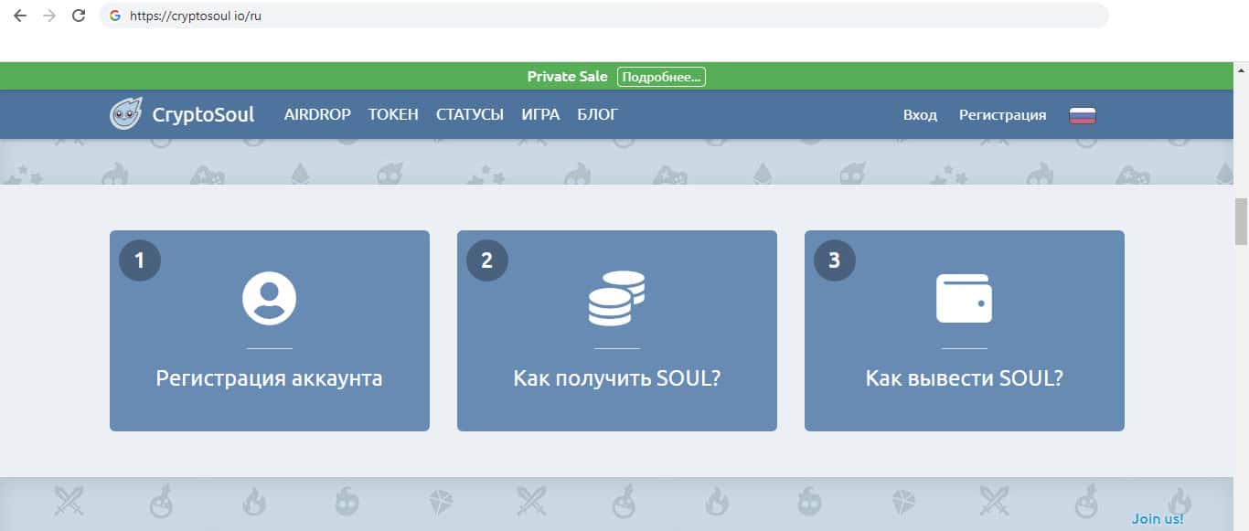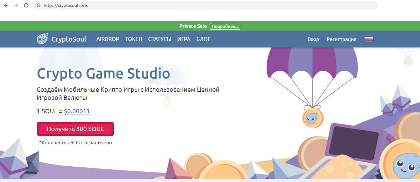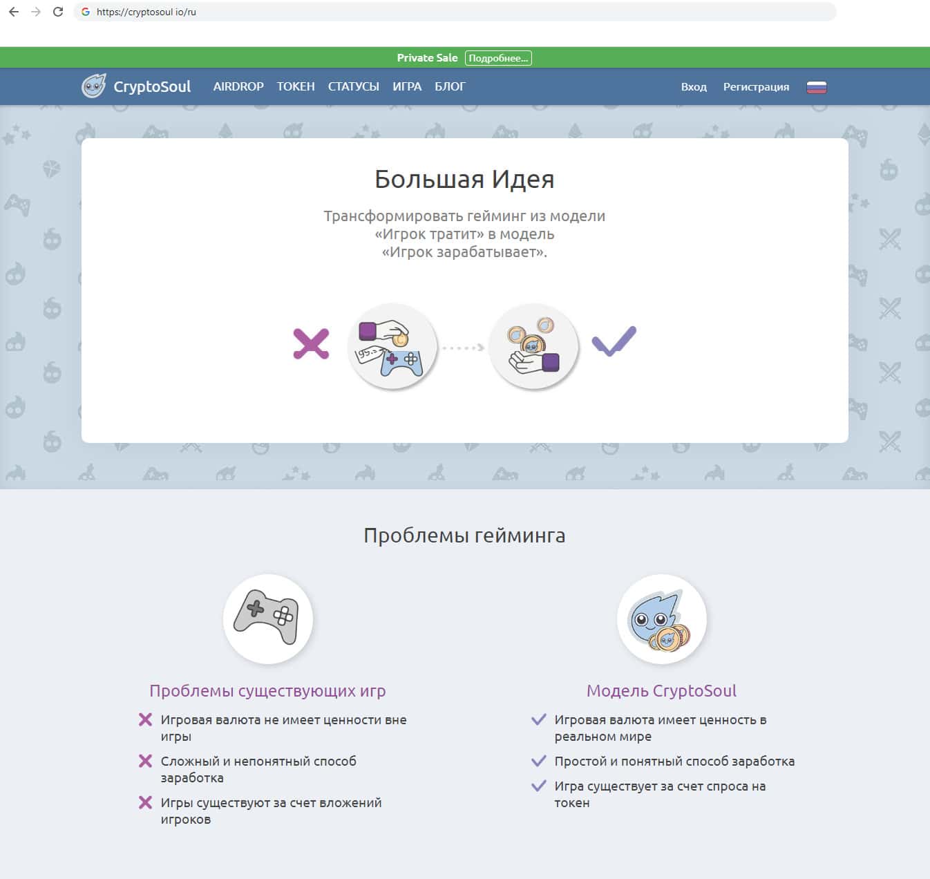 Сайт так же нам демонстрирует идею комании аферистов CryptoSoul Io. Смысл заключается в том, что компания якобы даёт возможность игрокам заработать денег. Но на самом деле ничего нет. Компания утверждает, что живёт не за счёт инвесторов, а за счёт спроса на токен, которого нет, так как ниодна биржа не берётся торговать им.