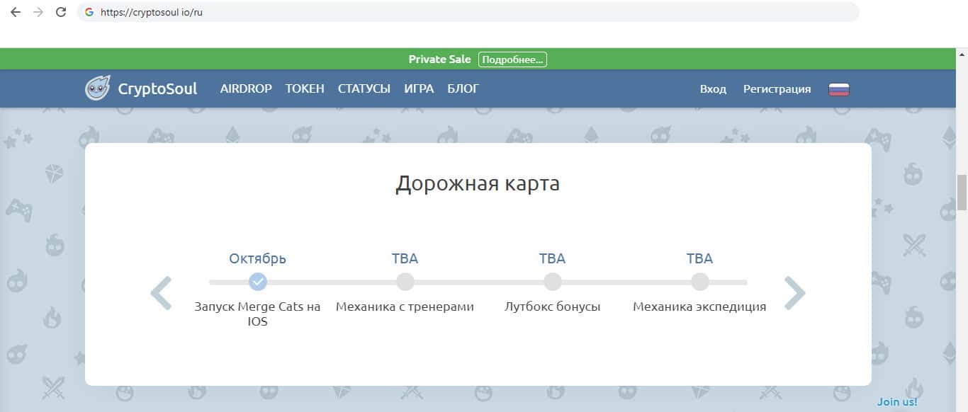 Главный сайт компании разводил CryptoSoul Io так же демонстрирует пользователям дорожную карту, в которой речь идёт о планах проекта, которые он хочет реализовать. Но всё это не более чем показуха, так как компания долго не проработает, она просуществует некоторое время, пока будут продаваться бонусы, а затем просто слиняют с деньгами пользователей.