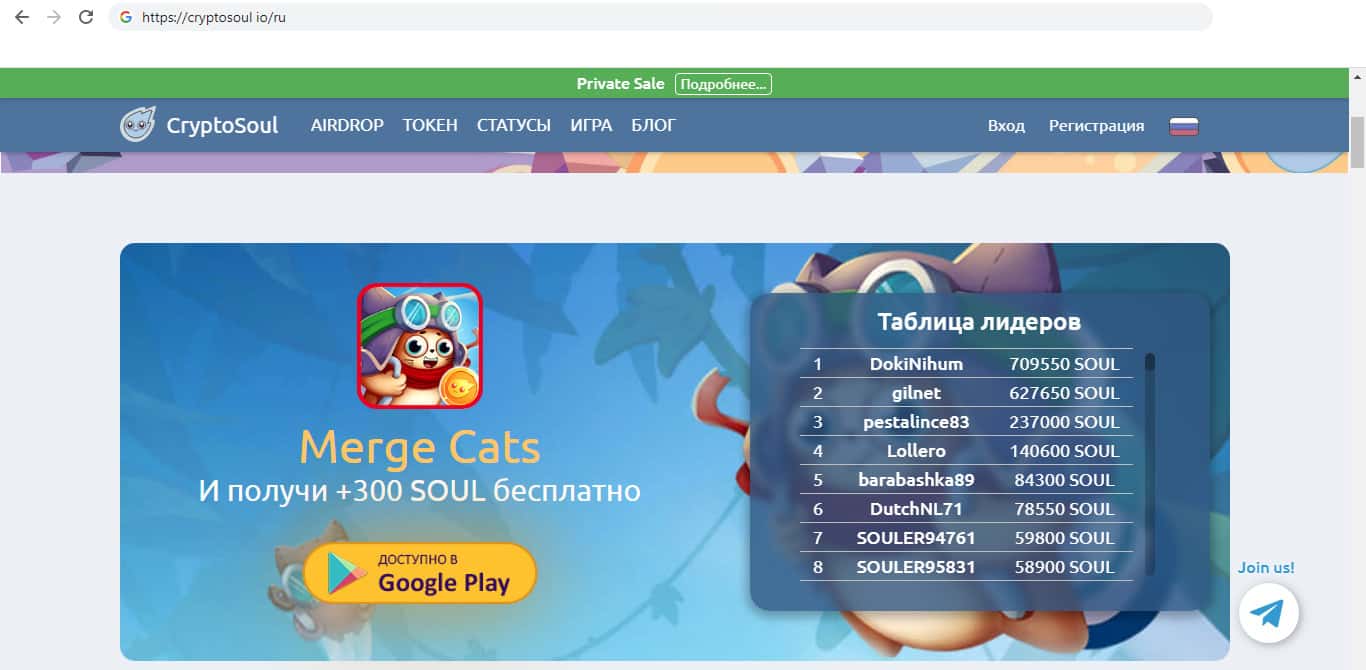 Сразу же сайт компании представляет пользователям свою игру, в которой якобы можно заработать крипту. Так же жулики Крипто Соул представили таблицу лидеров, в которой указано сколько игровой валюты имеет каждый пользователь. Это просто напросто реклама, и не больше, так как скорее всего таких пользователей не существует, а эта реклама для привлечения клиентов.