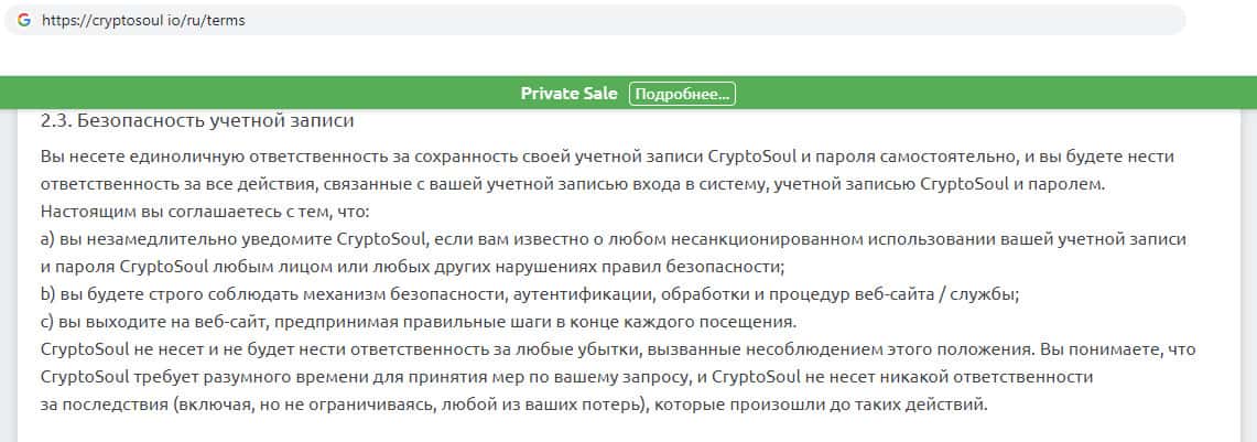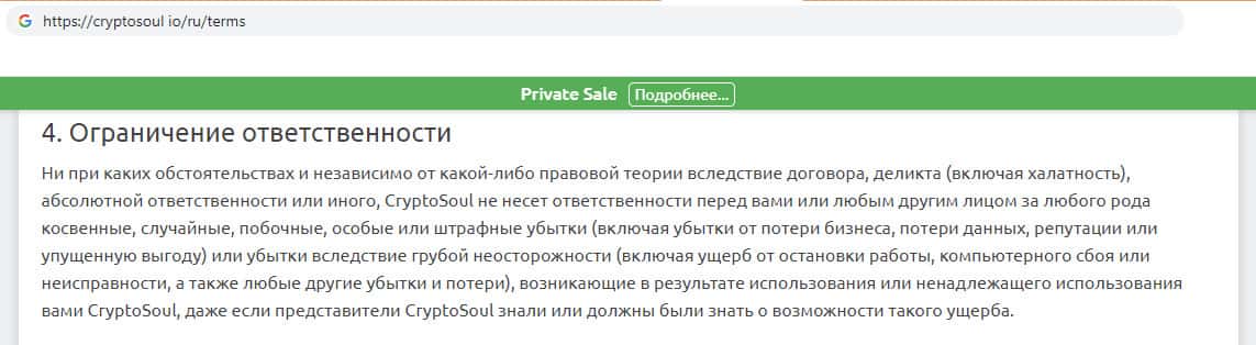 - Возмутительные пункты условия пользования компании разводил CryptoSoul Io