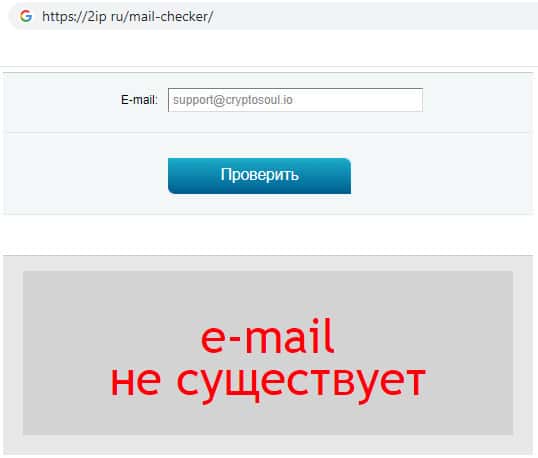 Мы проверили адрес электронной почты, который указала компания жуликов CryptoSoul Io в качестве контактного. и оказалось, что такого адреса не существует. Компания просто указала несуществующий адрес, что бы клиенты не беспокоили аферистов. Фирме главное что бы клиенты донатили, а не задавали вопросы, по этому связи с конторой нет.