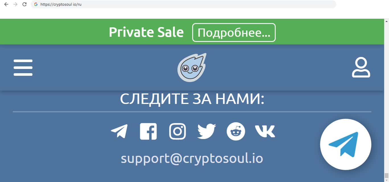 Контактной информации недоконтора Крипто Соул указала очень мало. С компанией возможно связаться лишь по электронной почте, или социальным сетям, которые они указали на своём главном интернет ресурсе. Фирма не указала ни адрес своего офиса, так же нет номера телефона, что о многом говорит. Контактные данные мошенников: