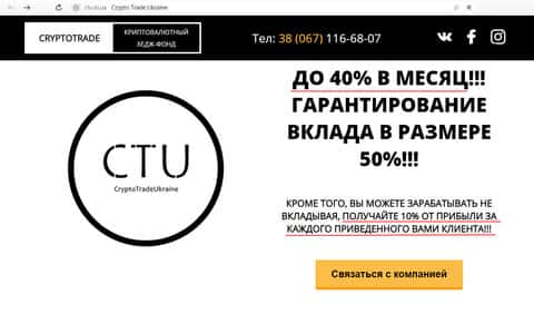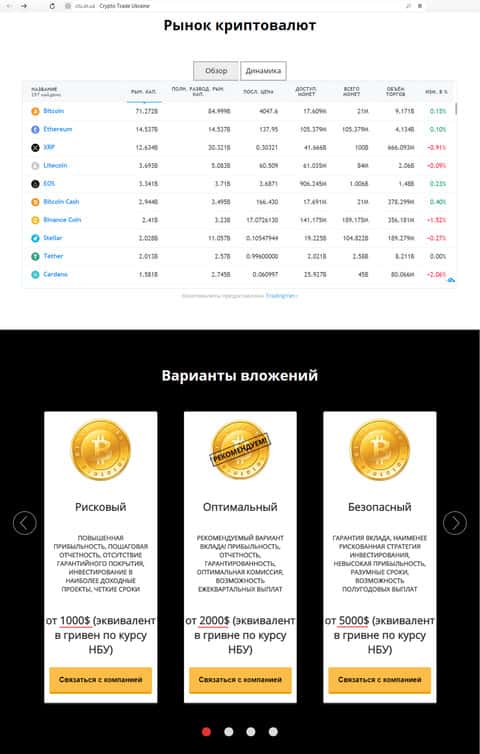 - Веб-сайт мошеннической конторы Crypto Trade