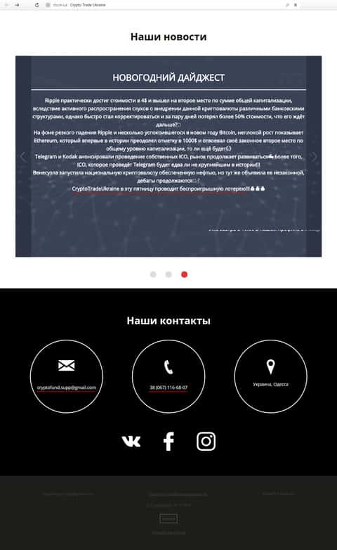 - Контакты, представленные на сайте шулеров с конторы Crypto Trade