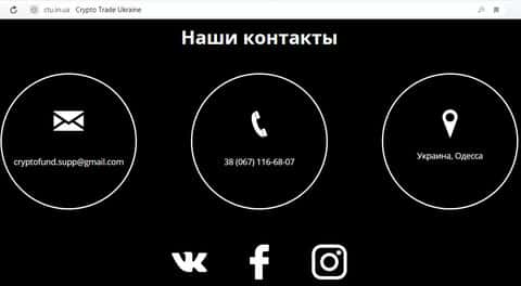 Контакты, представленные на сайте шулеров с конторы Crypto Trade