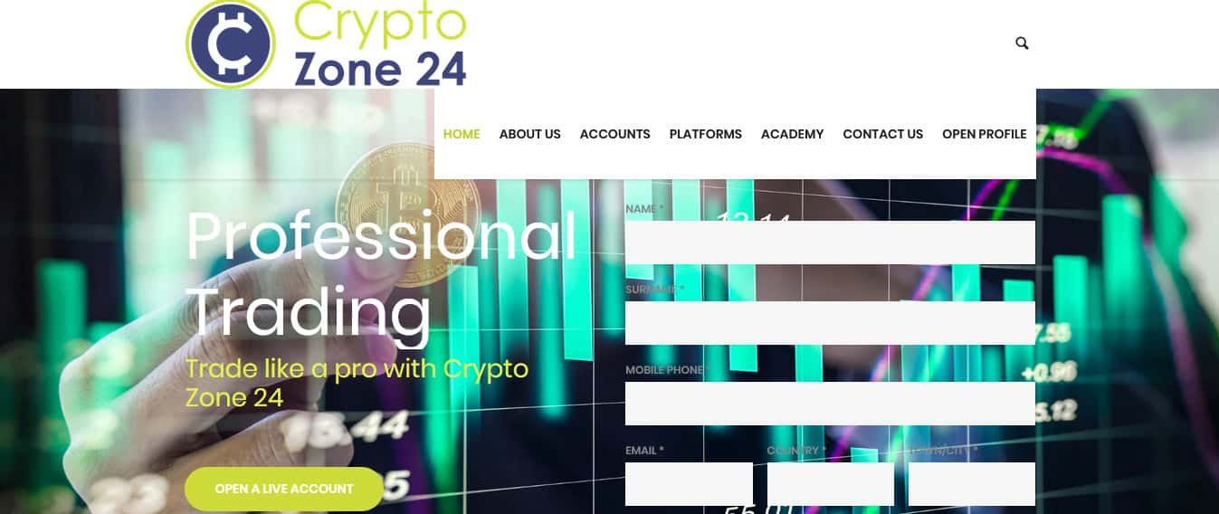 CryptoZone24 - очередной лохотрон, который якобы предоставляет услуги на рынке форекс. На деле же они просто кидают своих инвесторов и трейдеров на деньги. При этом, мошенники сейчас проявляют особую "креативность" создавая свои шаражки на английском языке, чтобы побольше пустить пыли в глаза.