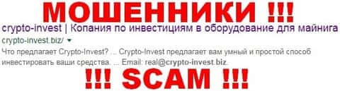 Крипто-Инвест – очередной лохотрон, спекулирующий на теме криптовалют и блокчейна. Невероятные инвестиционные планы, максимум взятых с интернета терминов о криптовалютах и минимум конкретики о специфике своей работы, а также правописание уровня третьего класса начальной школы – верные признаки лохотрона Crypto-Invest и ей подобных. Ни в коем случае не доверяйте аферистам с хайп-проекта Крипто Инвест.