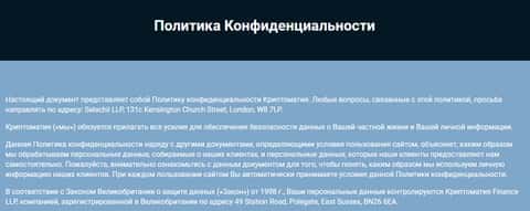 Политика конфиденциальности аферистов Cryptomatia