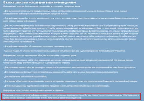Далее мошенники Криптоматия наводят перечень целей, для которых они и собирают личную и персональную информацию клиентов. Данный перечень является очередной "водой", не несущей в себе никакой информационной нагрузки. На деле аферисты Cryptomatia собирают информацию пользователей для дальнейшего шантажа и правовой защиты в случае разбирательств.