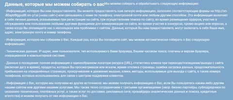 После в политике конфиденциальности следует раздел о том, что мошенники Криптоматия собирают о пользователях информацию, которую сами пользователя обязаны предоставлять по требованию лохотрона Cryptomatia, а в случае отказа аферисты Криптоматия могут без проблем ограничить доступ к мошеннической платформе.
