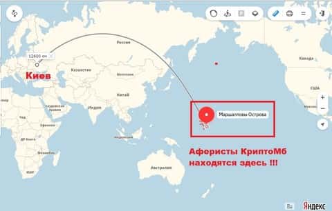 Начать стоит с того, что кухня КриптоМБ зарегистрирована на Маршалловых островах, соответственно является оффшором. Этот факт позволяет владельцам скрывать свою личность и доходы, а так же не платить с этих доходов налоги. Соответственно на крупные суммы CryptoMB кидает клиентов безнаказанно.В том случае если лохотронщики из КриптоМБ и Вас тоже ограбили, то в таком случае непременно напишите про это нам. Оставьте свой адрес электронного ящика в форме связи чуть ниже, с Вами установят связь.