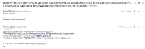 Очередная жалоба на КриптоМБ от человека, утратившего более 300$