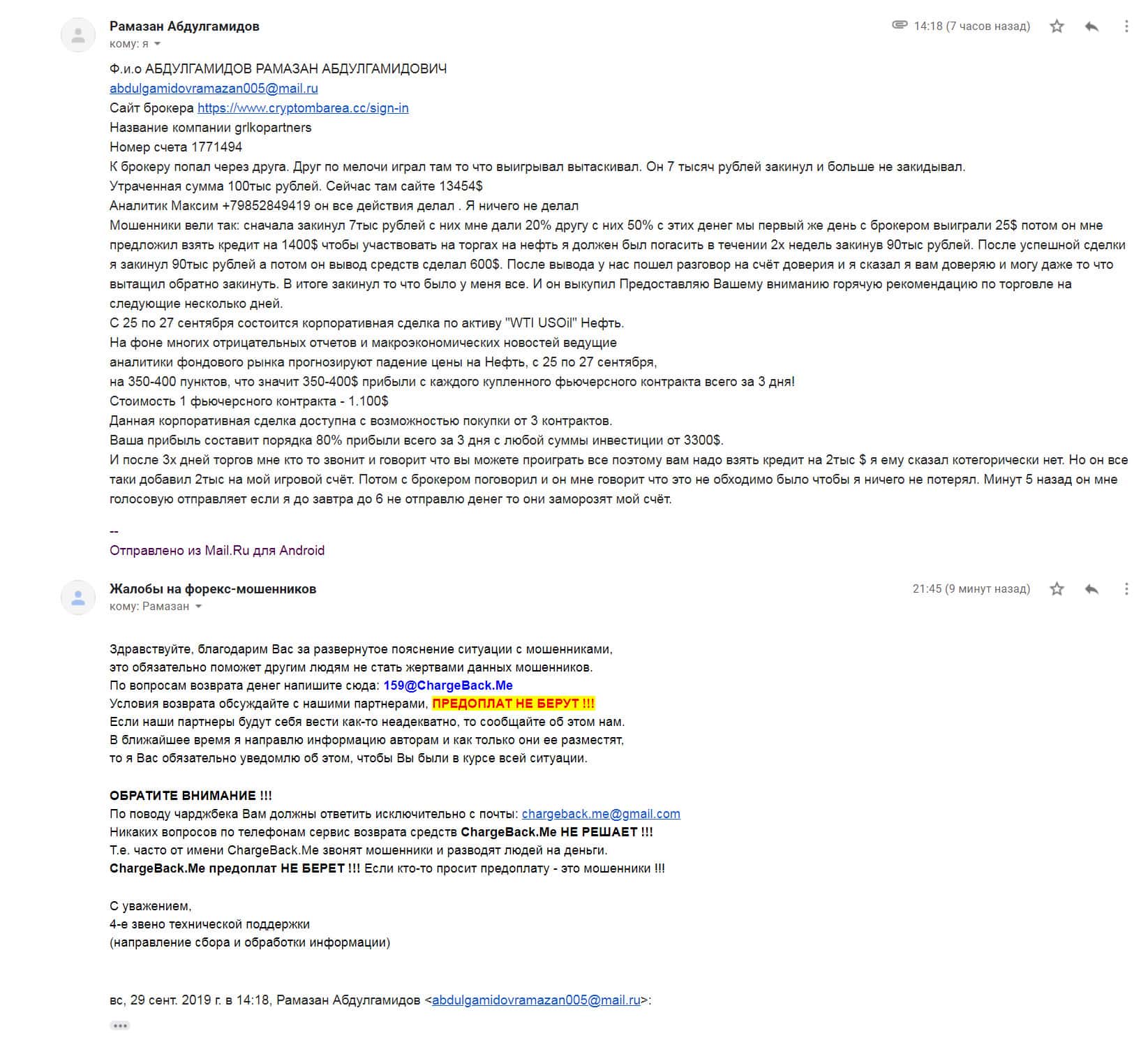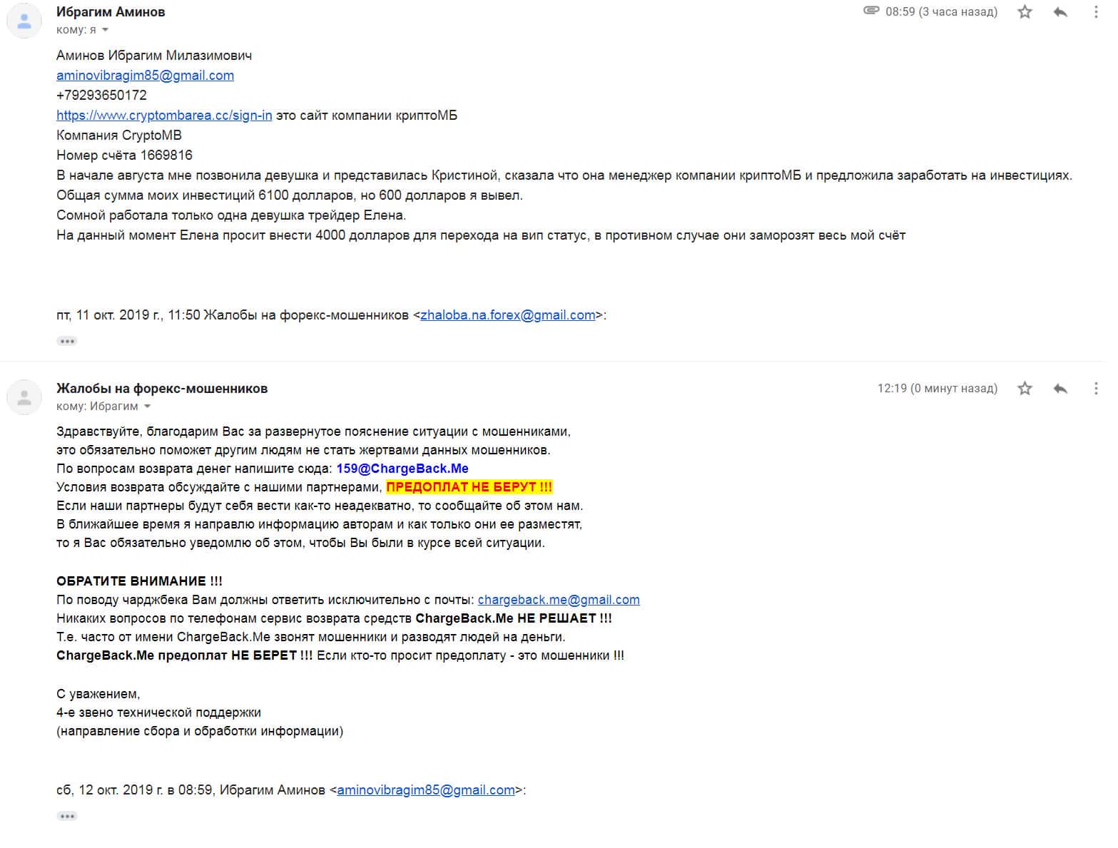 - Подробная жалоба на аферистов CryptoMB (клиент утратил более 10 000$)