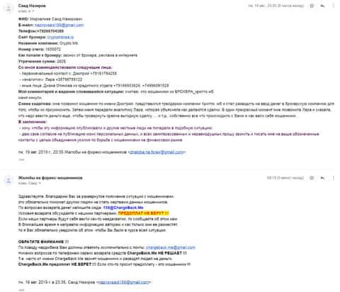 - Детальная жалоба на аферистов Крипто МБ