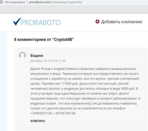 - Очередная жалоба на КриптоМБ от человека, утратившего более 300$