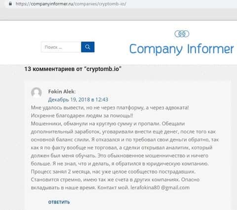 - Жалоба на КриптоМБ от очередного клиента, утратившего более 1500$