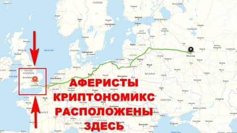 Мошенническая форекс-контора Криптономикс, согласно официальным данным, расположена на территории Великобритании в Лондоне. А это довольно далеко от столицы России.