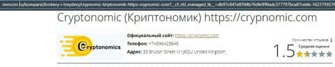 Далее представлена информация о мошеннической конторе Криптономикс, где мы можем найти рейтинг конторы. Как оказалось их рейтинг очень низкий и это результат опроса клиентов.