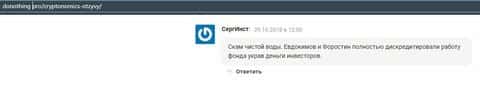 Один из инвесторов написал свой отзыв и утверждает, что Криптономикс - это лохотрон чистой воды. Он вложил туда деньги, а вернуть украденное теперь совсем не может.