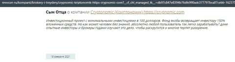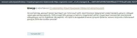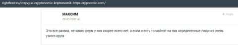 В данном отзыве один из пользователей сети утверждает, что контора Crypnomic не имеет никаких майнинговых ферм, а весь якобы доход это развод, который выдуманный создателями.