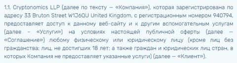 В данной части соглашении указано, что контора Криптономикс оставляет за собой право отказать клиенту в предоставлении обслуживания без указания на то каких-либо причин.