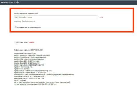Чтобы проверить, кто является владельцем сайта Криптономикс мы решили обратиться на ресурс whoise-service ru. Как оказалось информация об этом скрыта самими владельцами.