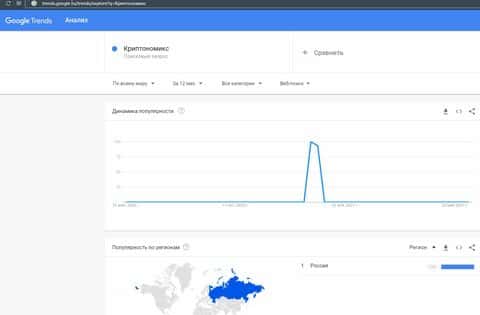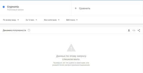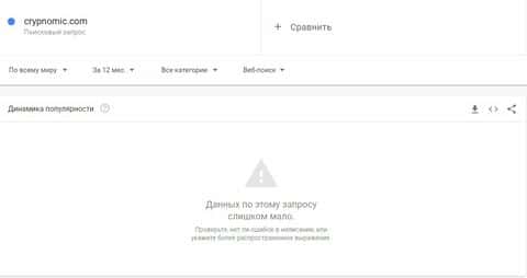 Та же ситуация и с обычным сайтом "crypnomic.com", данных о котором в запросах Гугл Трендс не было обнаружено.