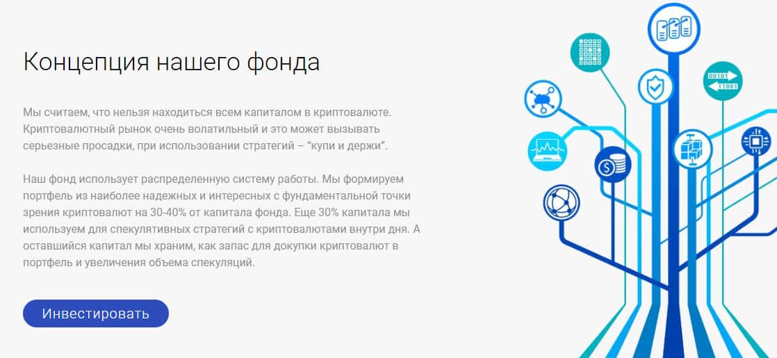 Далее на подвальном сайте у аферистов КрипТоп Фонд следует довольно сомнительное описание их конторы, которое является банальной лапшой на уши наивным пользователям сети интернет, которых пытаются привлечь с помощью огромных обещаний. На изображении, расположенном ниже, вы можете увидеть данный раздел сайта мошенников.