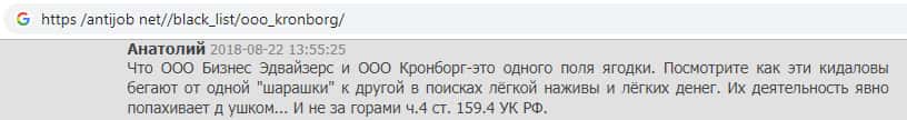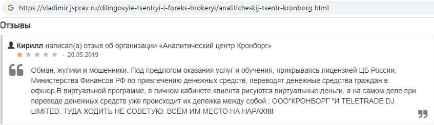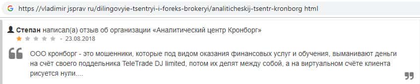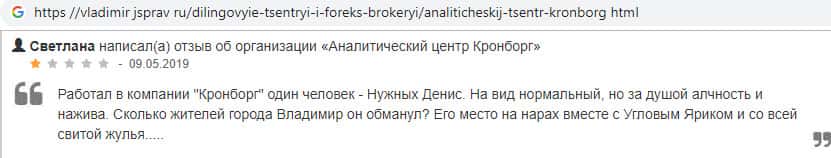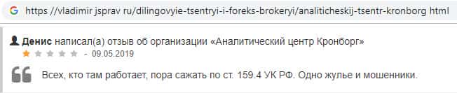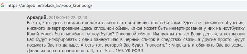 Негативный отзыв очередного пользователя в сторону проходимцев из Kronborg-CC