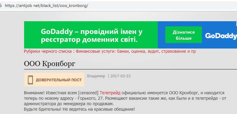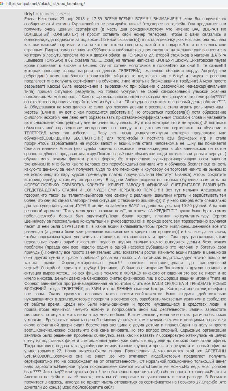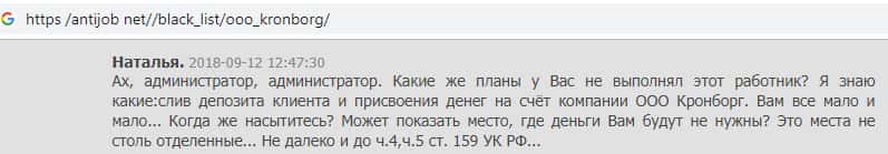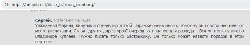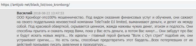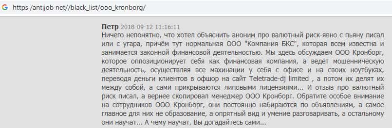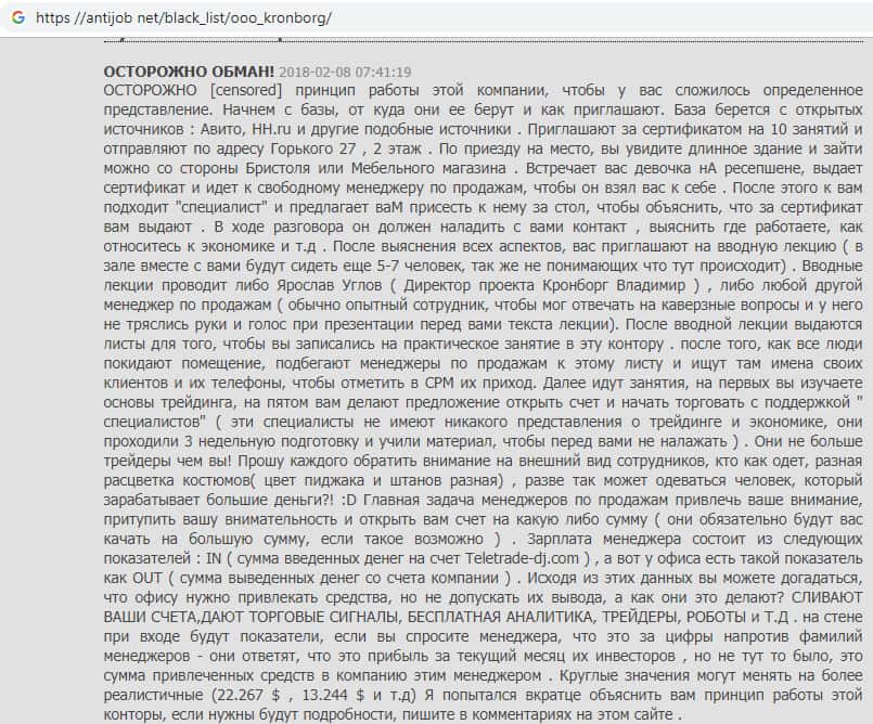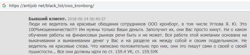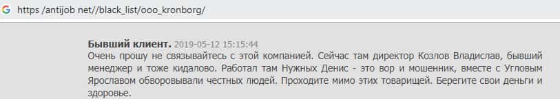 - Мнение о жульническом брокере из Кронборг СС составили на веб-платформе antijob net
