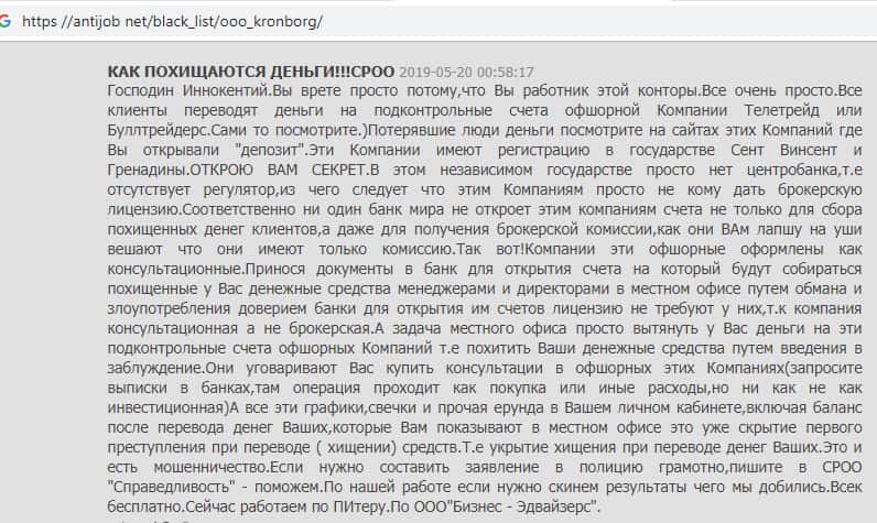 - Изобличающий комментарий бывшего трейдера надувательской брокерской компании Кронборг СС