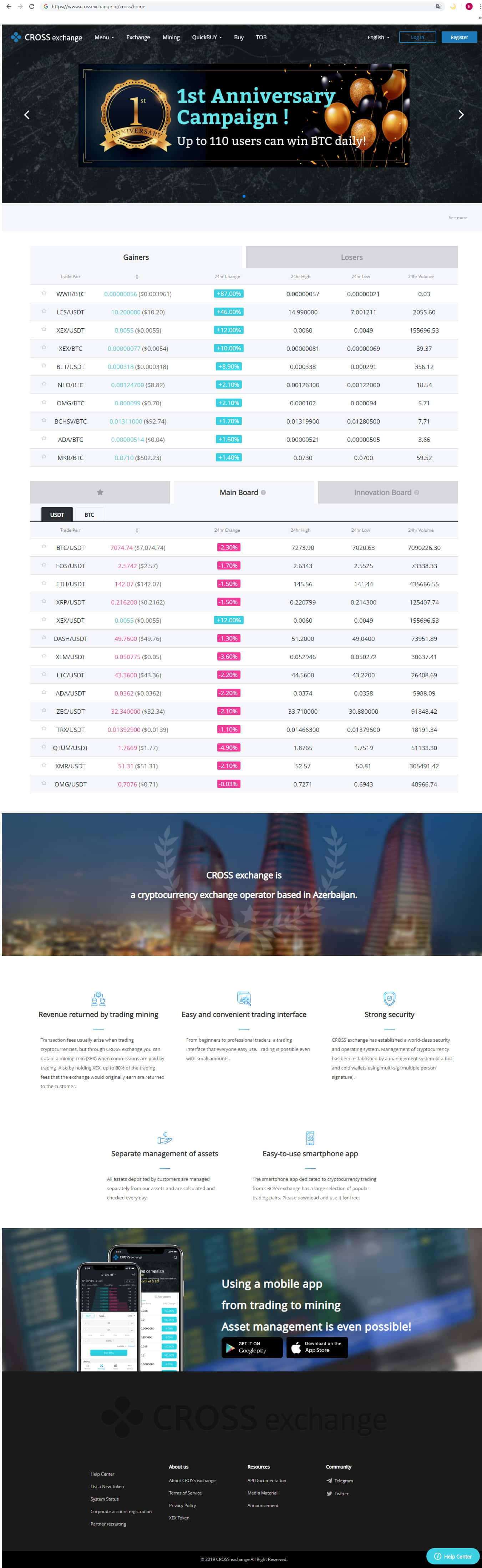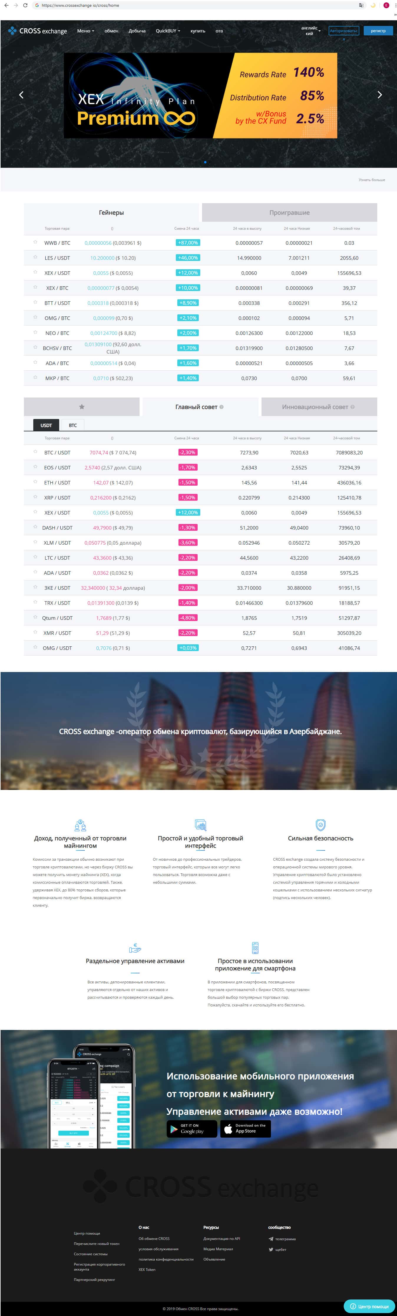 Сайт лохотрона CROSS exchange - выполнен довольно посредственно, видимо у разработчиков не хватило фантазии сделать что то лучше. Большую часть занимают мномые графики, так же представлен раздел с ссылкой на приложение для смартфона, что бы на деньги вас могли кинуть и через телефон.