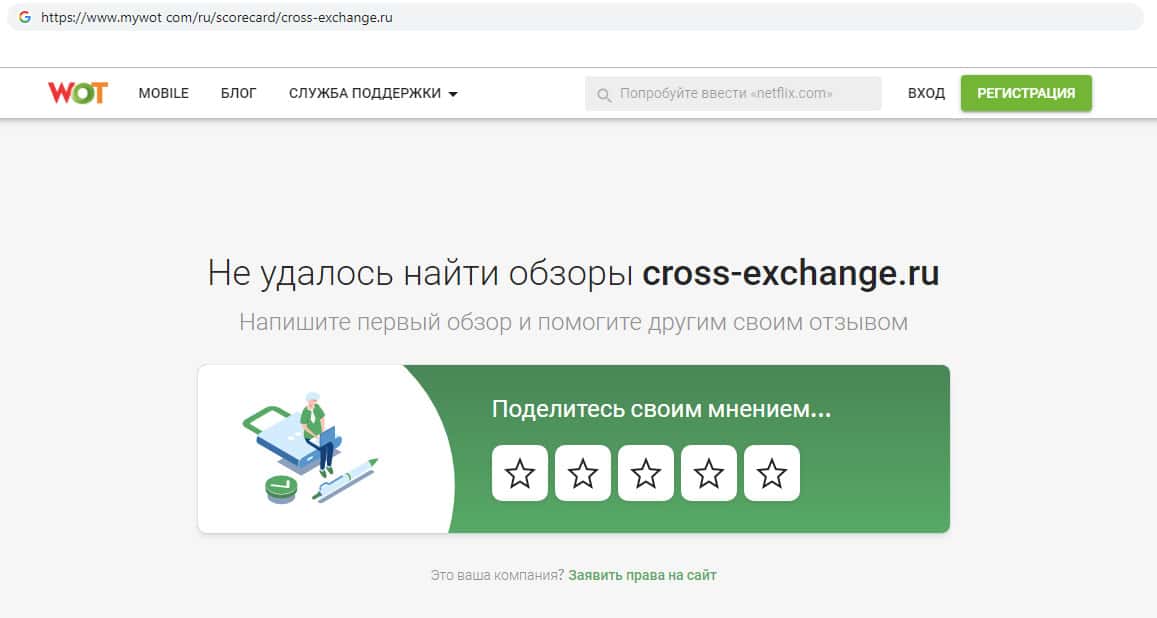 После проверки интернет ресурса Кросс Эксчэндж выяснилось, что другие сайты ничего не знают о этой фирме, даже те, которые проверяют на уровень доверия сайта и безопасность. Мошенники просто проплачивают другим интернет ресурсам что бы о них ничего не выкладывали, и не портить якобы "чистую" репутацию.