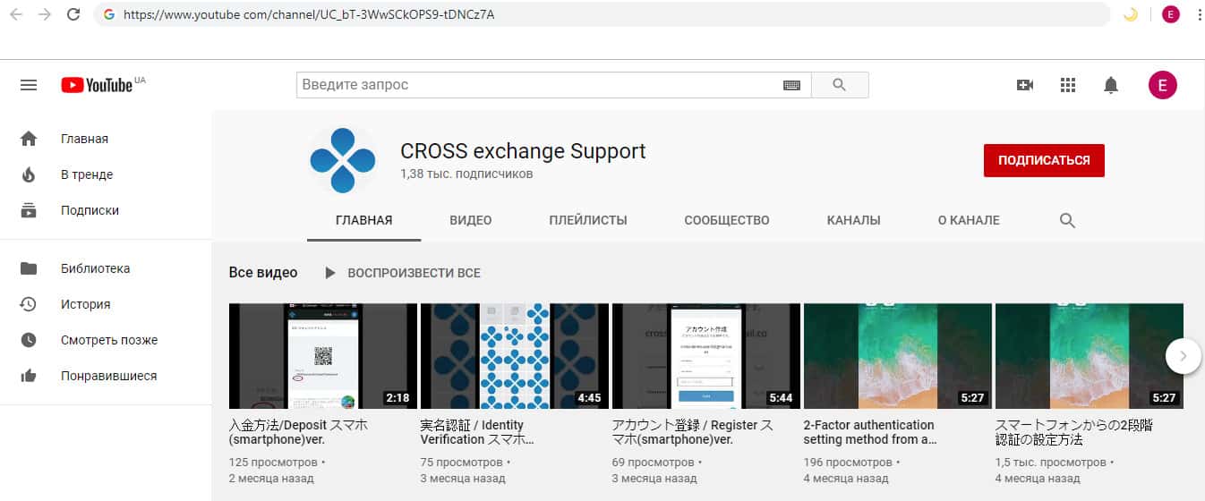 Аферисты CROSS exchange не обошли стороной и известнейший видеохостинг в мире "YouTube". Там они накрутили себе подписчиков что бы казаться популярной фирмой, но по количеству подписчиков и количеству видео и их просмотров не сложно догадаться, что это всё "липа" и всё тут проплаченно. Не обмануть зрителя опытного таким фэйком.